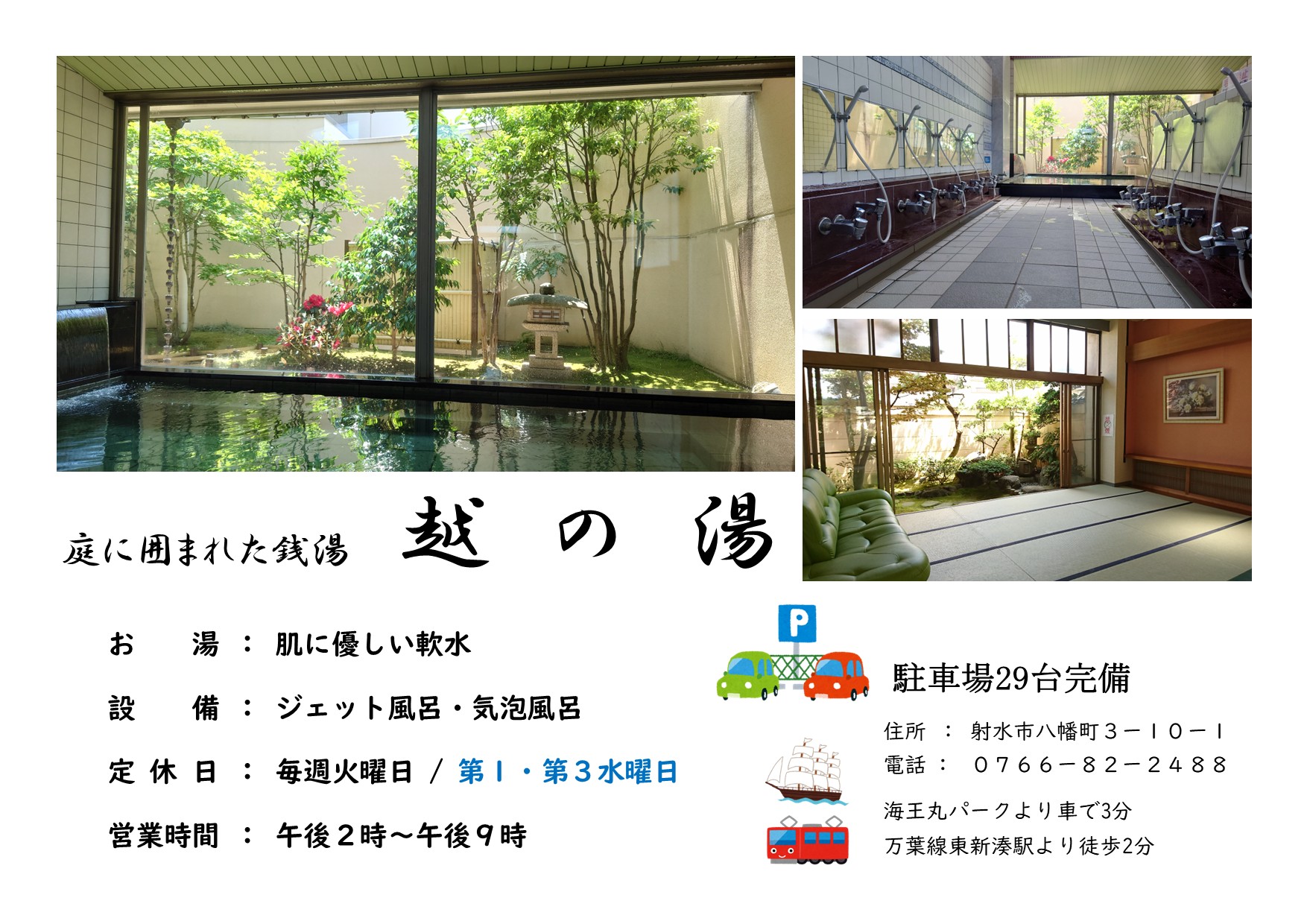 【住所】 〒934-0025 射水市八幡町3丁目10-1 【電話番号】 0766-82-2488 【営業時間】 14:00~21:00 【定休日】 毎週火曜日 / 第1・第3水曜日 【PR】 やわらかな開放感が 癒しとやすらぎのひとときを